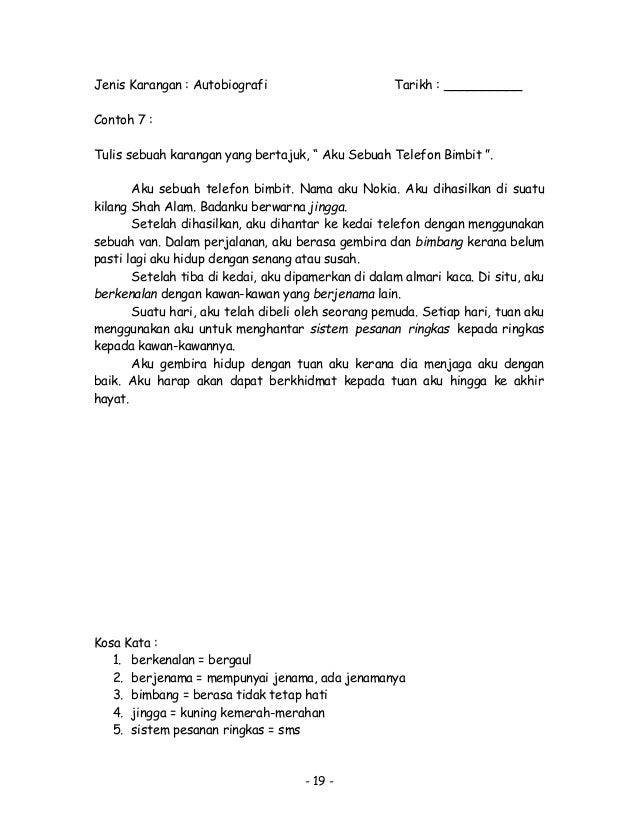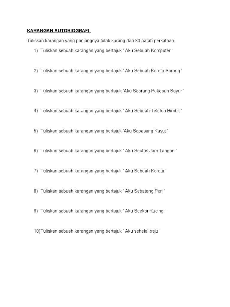 Karangan autobiografi aku sebuah kereta tahun 5. We did not find results for: Maybe you would like to learn more about one of these? Check spelling or type a new query.